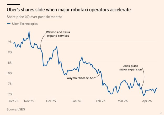Tờ FT nhận định tham vọng của Uber đặt họ vào thế đối đầu trực tiếp với ba trong số những công ty giá trị nhất thế giới: Alphabet (sở hữu Waymo), Tesla và Amazon (sở hữu Zoox). Tất cả các đối thủ này đều có xu hướng loại bỏ các bên trung gian để trực tiếp tiếp cận người dùng.
