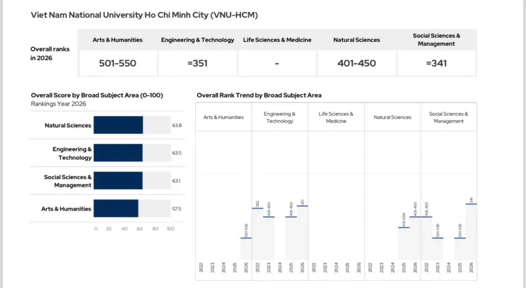 ĐHQG-HCM tiếp tục ghi nhận kết quả tích cực trên bảng xếp hạng QS Subject 2026.