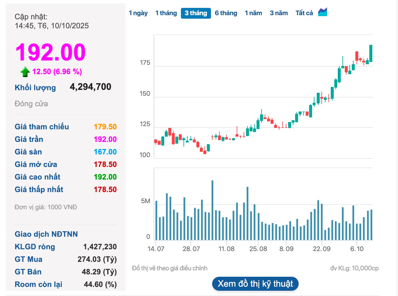 Động thái này được đưa ra trong bối cảnh cổ phiếu VIC tiếp tục thăng hoa mạnh mẽ, lập đỉnh lịch sử mới trong phiên 10/10 ở mức 192.000 đồng/cp. Với mức giá này, vốn hóa thị trường của Vingroup đã đạt gần 740.000 tỷ đồng, tương đương khoảng 28,5 tỷ USD, củng cố vững chắc vị thế doanh nghiệp có giá trị lớn nhất sàn chứng khoán Việt Nam, bỏ xa nhóm doanh nghiệp xếp sau về quy mô.