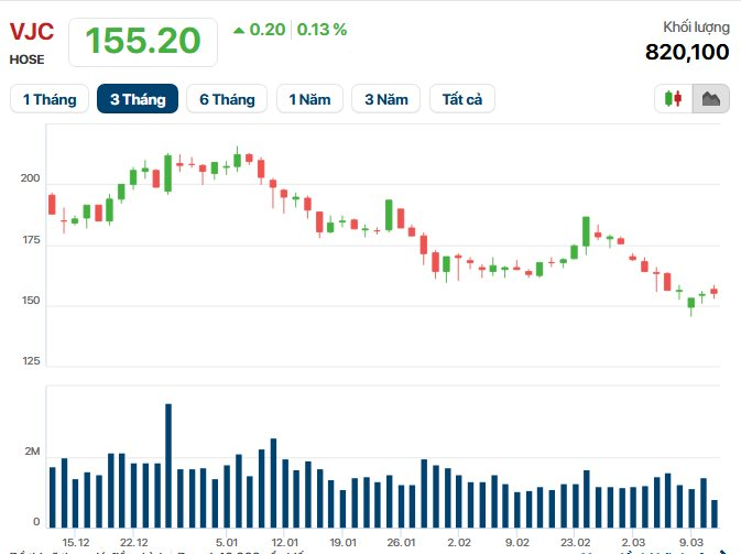 Tại Công ty Cổ phần Hàng không Vietjet, ông Nguyễn Phước Hùng Anh Victor, con trai Chủ tịch Nguyễn Thị Phương Thảo, thông báo mua vào 2 triệu cổ phiếu với giá trị ước tính 310 tỷ đồng. Sự xuất hiện của dòng vốn nội bộ giúp thị giá VJC duy trì sắc xanh nhẹ và đạt mốc 155.200 đồng.