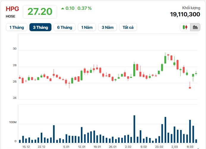 Lực cầu này đã phát huy tác dụng khi thị giá HPG vươn lên mốc 27.200 đồng lúc kết thúc phiên sáng 11/3, tương đương mức tăng 7,3% so với mức giá đóng cửa ngày 9/3.