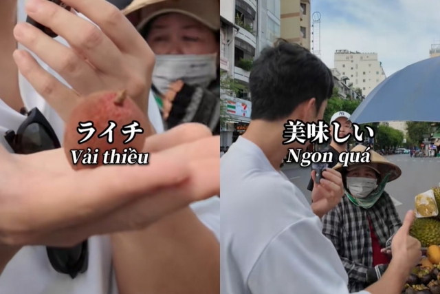Đáng chú ý, du khách này còn trải nghiệm vải thiều, loại trái cây đặc sản nổi tiếng của Việt Nam, không quen dành nhiều lời khen cho hương vị ngọt thơm, mọng nước của loại quả này.
