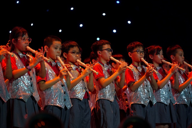 Học sinh trình diễn sáo Recorder