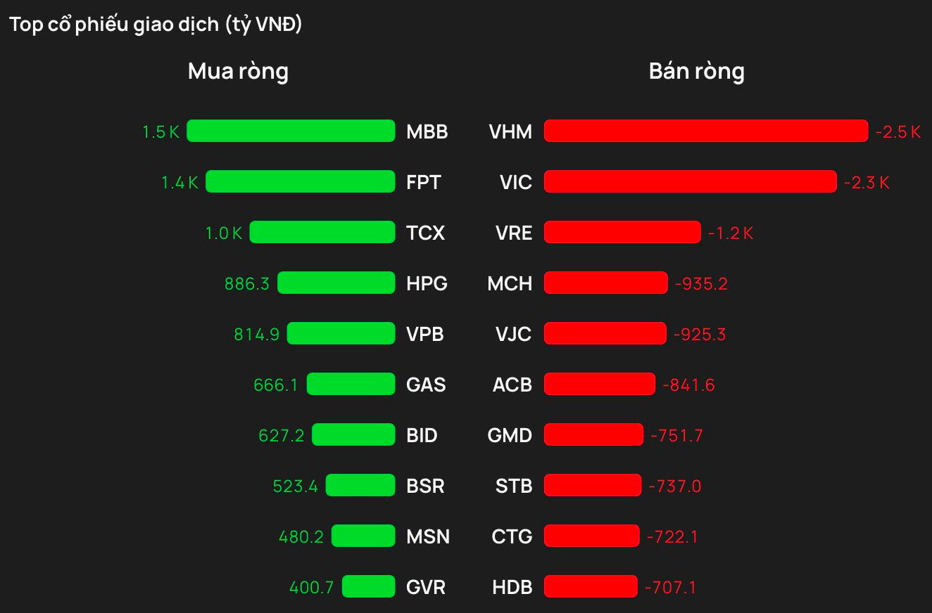 Mặc dù dòng vốn ngoại chưa có dấu hiệu đảo chiều quay trở lại thị trường chứng khoán Việt Nam nhưng áp lực bán ròng khá cục bộ, tập trung trên một số cổ phiếu tăng nóng trong năm ngoái như nhóm Vingroup. Chỉ riêng 3 cổ phiếu VIC, VHM và VRE đã bị bán ròng tổng cộng 6.000 tỷ từ đầu năm 2026. Ở chiều ngược lại, MBB, FPT, TCX, HPG… là những cổ phiếu được khối ngoại mua ròng mạnh tay.