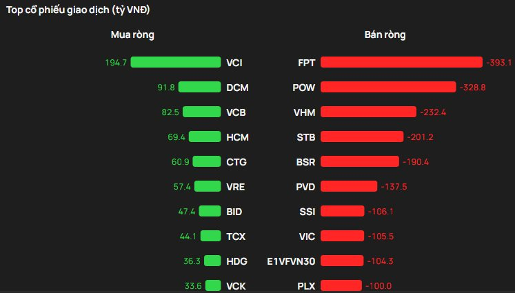 Ngược lại, FPT là cổ phiếu khối ngoại bán mạnh nhất với 393 tỷ đồng. Theo sau, các cổ phiếu POW và VHM cũng bị "xả" 328 tỷ đồng và 232 tỷ đồng.