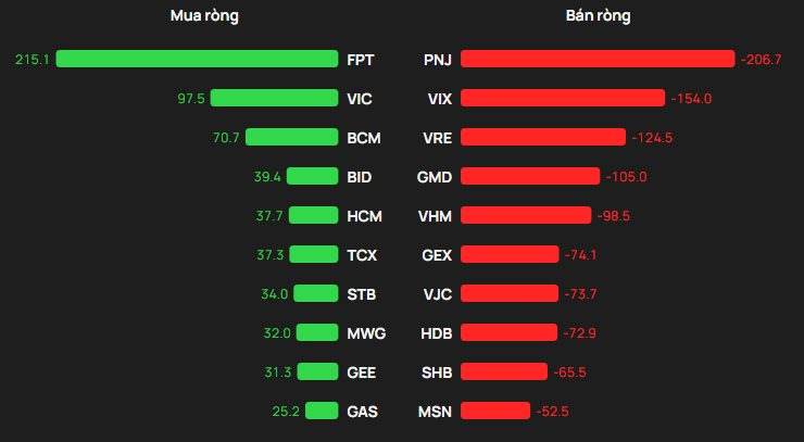 Ngược lại, PNJ là cổ phiếu khối ngoại bán mạnh nhất với 207 tỷ đồng. Theo sau, các cổ phiếu VIX và VRE cũng bị "xả" 154 tỷ đồng và 125 tỷ đồng.