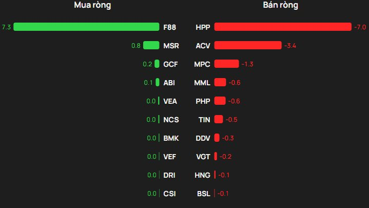 Ngược chiều, HPP bị khối ngoại bán ròng 7 tỷ đồng. Ngoài ra khối ngoại cũng bán ròng tại ACV, MPC,...