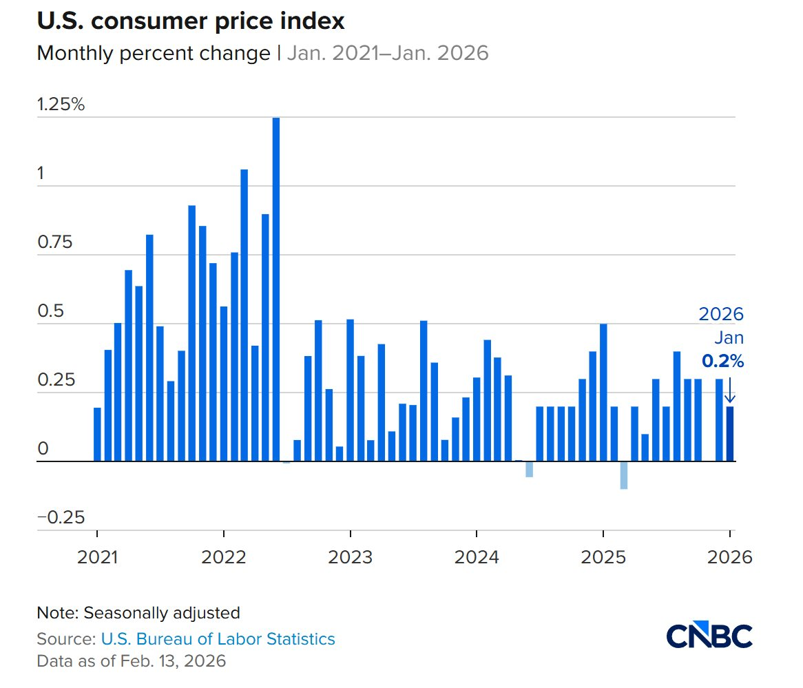 Theo Cục Thống kê Lao động Mỹ công bố hôm 13/2, chỉ số giá tiêu dùng (CPI) tháng 1 tăng 2,4% so với cùng kỳ năm trước. Mức này thấp hơn 0,3 điểm phần trăm so với tháng trước. Lạm phát quay về tương đương với tháng 5/2025, thời điểm sau khi Tổng thống Donald Trump công bố áp thuế mạnh tay đối với hàng nhập khẩu vào Mỹ vào tháng 4/2025.