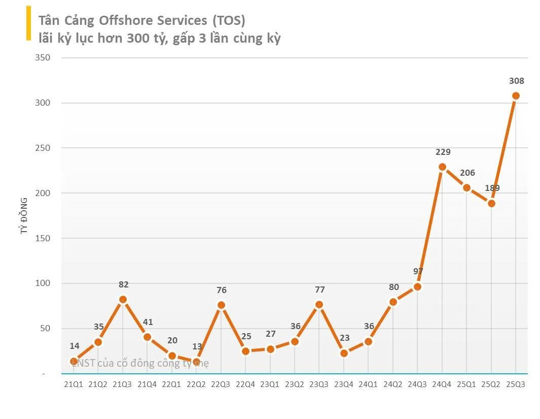 Lũy kế 9 tháng đầu năm 2025, doanh thu thuần của TOS đạt 3.553 tỷ đồng, tăng 72% so với cùng kỳ. Lợi nhuận trước thuế đạt 936 tỷ đồng, tăng 230%; Lợi nhuận sau thuế 9 tháng đạt 762,5 tỷ đồng, trong khi cùng kỳ năm trước chỉ đạt 235,9 tỷ đồng, tương đương mức tăng trưởng 3,2 lần.