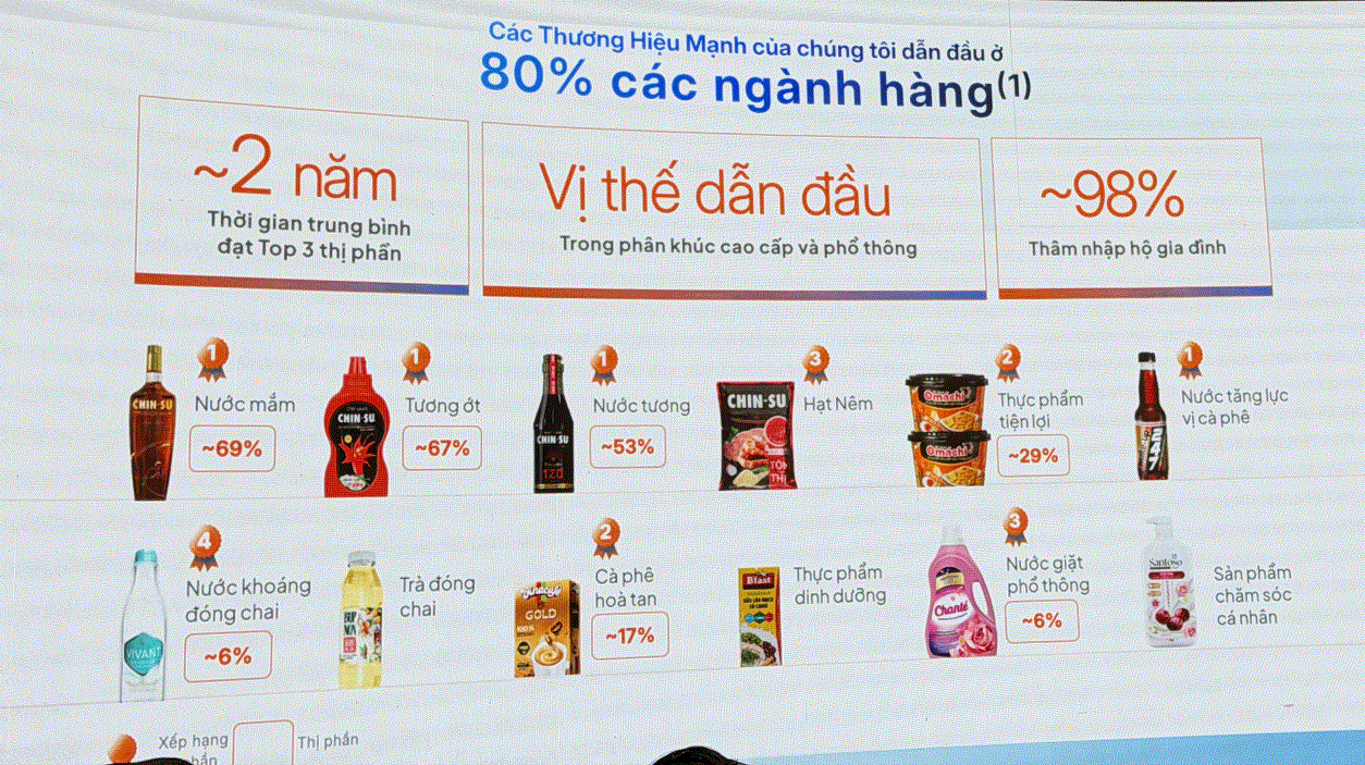 - Vị thế dẫn đầu: Đứng đầu tại 80% các ngành hàng tham gia, sở hữu những thương hiệu đóng góp doanh thu lớn như Chin-su, Nam Ngư, Omachi và Kokomi.