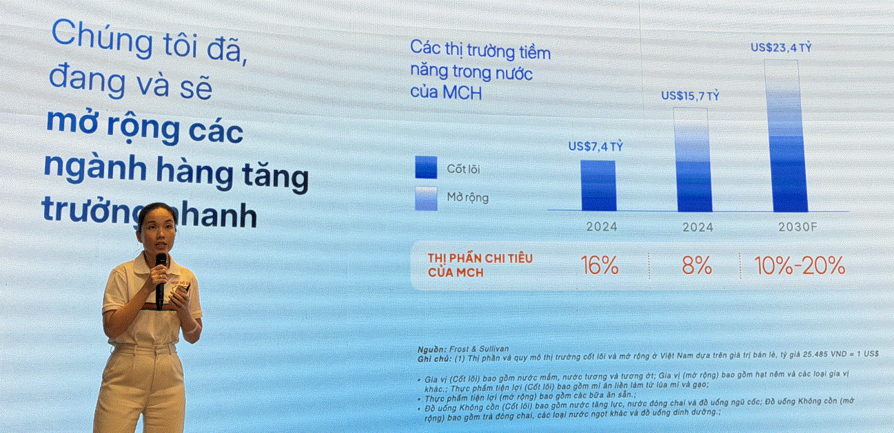 Đáng chú ý nhất là tiềm năng mở rộng quy mô thị trường thông qua sự chuyển dịch chi tiêu của người dùng. Theo dữ liệu nghiên cứu thị trường mà Masan công bố, quy mô thị trường mục tiêu các dòng sản phẩm của doanh nghiệp sẽ mở rộng từ mức 15,7 tỷ USD hiện tại lên 23,4 tỷ USD vào năm 2030. Sự gia tăng này đi kèm với kỳ vọng nâng cao tỷ trọng thị phần chi tiêu (Wallet share) của MCH trong giỏ hàng người Việt, không chỉ ở các ngành hàng cốt lõi mà còn ở các mảng mở rộng như chăm sóc cá nhân và giải pháp bữa ăn.