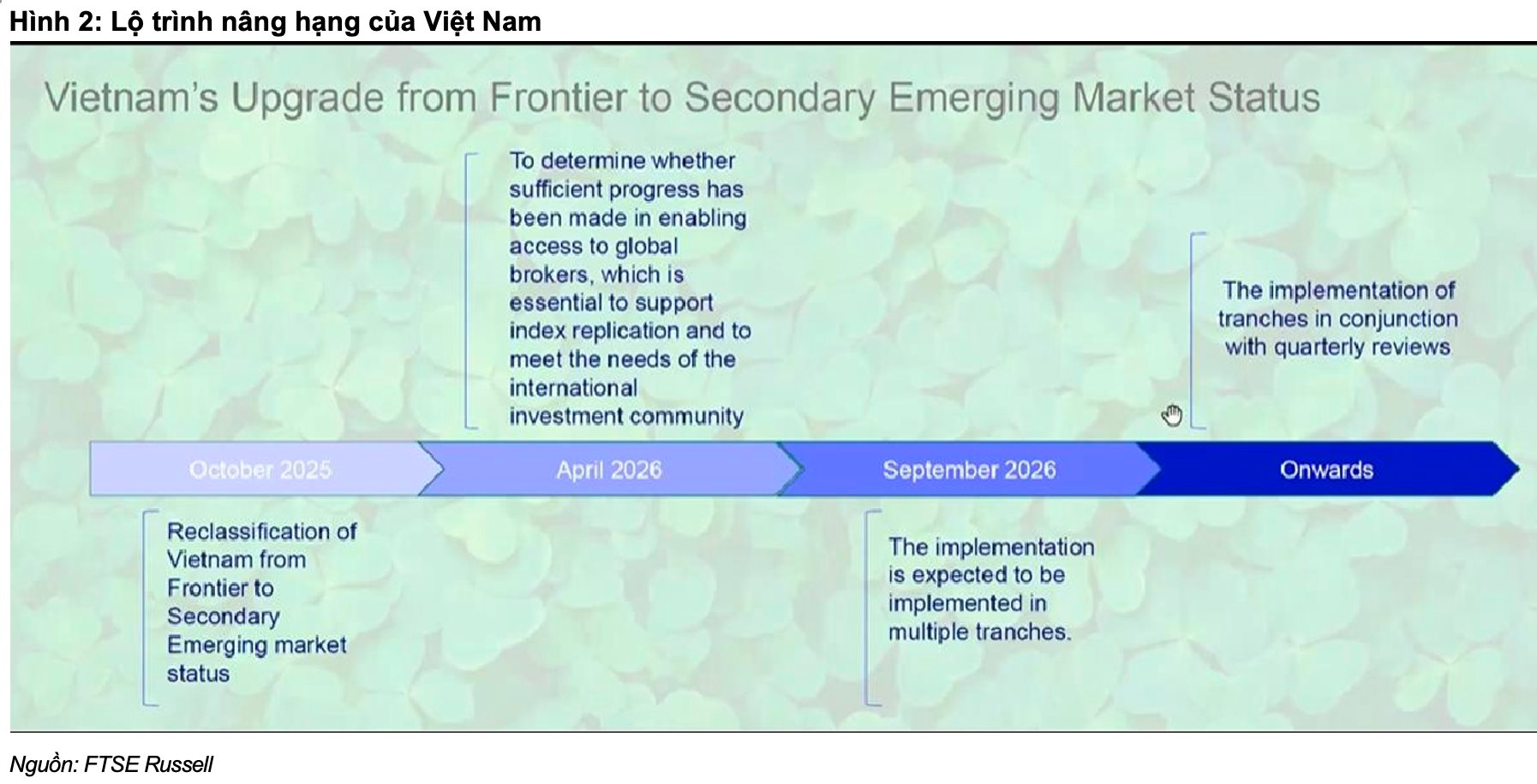 FTSE sẽ tiếp nhận ý kiến phản hồi từ nhà đầu tư về mô hình môi giới toàn cầu trong kỳ rà soát tháng 3/2026 và trên cơ sở đó sẽ công bố lộ trình triển khai chính thức. Chứng khoán Maybank kỳ vọng việc triển khai sẽ được thực hiện theo 3–5 giai đoạn, bắt đầu từ tháng 9/2026.