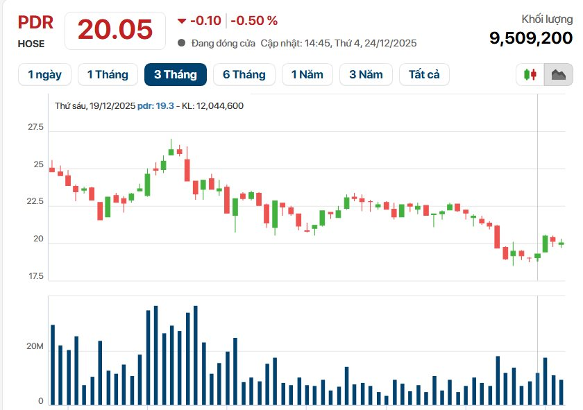 Kết phiên giao dịch ngày 24/12/2025, thị giá cổ phiếu PDR dao động quanh mức 20.050 đồng/cổ phiếu, cao gấp đôi so với giá chào bán ESOP. Điều này đồng nghĩa với việc các cán bộ nhân viên tham gia đợt phát hành đã ghi nhận mức "lãi tạm tính" ngay 100% trên số vốn bỏ ra (chưa tính thuế và phí liên quan).