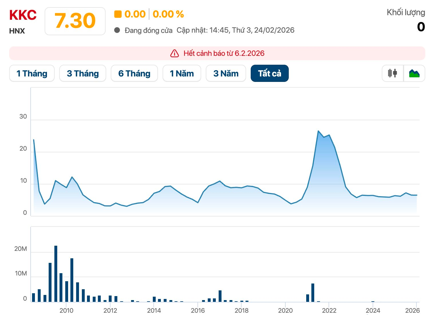 Trên sàn chứng khoán, cổ phiếu KKC giao dịch quanh vùng 7.000 đồng/cp với thanh khoản thấp.