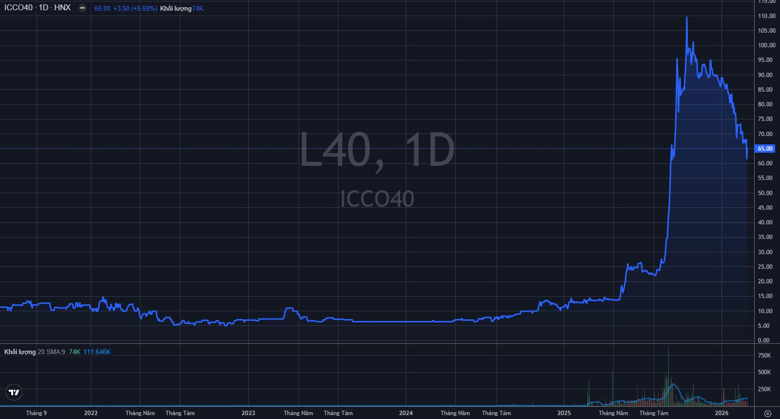 Trên thị trường, cổ phiếu L40 chốt phiên 10/3 đạt 65.000 đồng/cp.