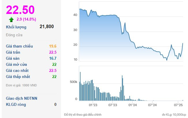 Cụ thể, cổ phiếu VUA của Công ty cổ phần Chứng khoán Stanley Brothers xác lập chuỗi 3 phiên tăng trần liên tiếp, thị giá đóng cửa ngày 25/8 tại mức giá tím 22.500 đồng/cp. Đây là mức giá cao nhất của mã này kể từ đầu tháng 1/2024. Thanh khoản trong phiên đầu tuần cũng cao đột biến với 21.800 cổ phiếu được giao dịch, khác với giai đoạn cả năm trước đó thanh khoản nhiều phiên đóng băng.