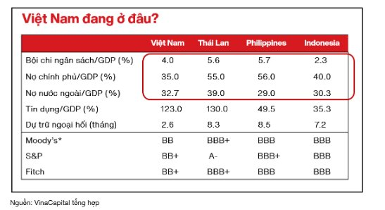 Về cơ bản, Việt Nam đã đáp ứng phần lớn các tiêu chí định lượng quan trọng cho việc nâng hạng, như tỷ lệ nợ công trên GDP ở mức khoảng 35% và nợ nước ngoài khoảng 33% GDP – đều thấp hơn hoặc tương đương nhiều quốc gia trong khu vực đã đạt xếp hạng Đầu tư. Trong khi đó, các điểm còn hạn chế chủ yếu nằm ở yếu tố định tính, đặc biệt là mức độ dự báo và minh bạch của chính sách. Hiện Việt Nam đang được S&P và Fitch xếp hạng thấp hơn một bậc so với mức Đầu tư, và thấp hơn hai bậc theo Moody’s.