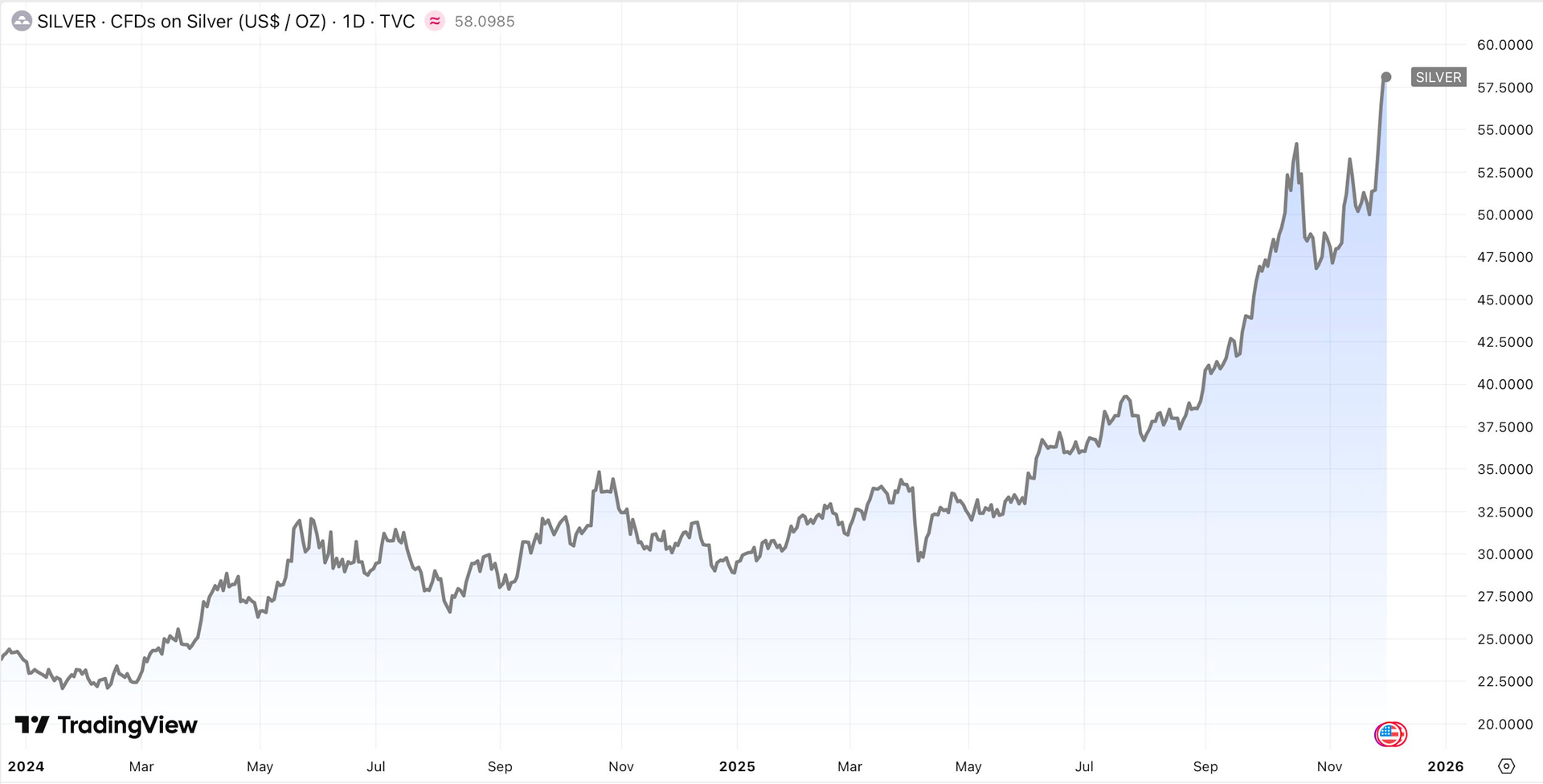 Đồng quan điểm, CEO Paul Williams của công ty cung ứng vàng bạc Solomon Global cũng cho rằng các động lực cơ bản của thị trường bạc không có dấu hiệu giảm bớt, cho thấy đợt tăng giá bạc có thể được duy trì đến năm 2026. Mặc dù đã đạt mức kỷ lục, giá bạc vẫn rẻ so với vàng. “Trong bối cảnh hiện tại, giá bạc 100 USD/oz là hoàn toàn khả thi vào cuối năm 2026”, chuyên gia nhận định.