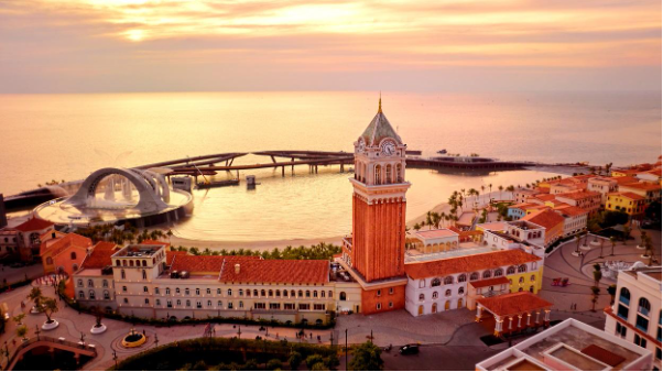 Cách đó không xa là Thị trấn Hoàng Hôn với những ngôi nhà ngói đỏ mang sắc màu Amalfi (Italy). Cầu Hôn – giữa trung tâm Thị trấn, cũng được kỳ vọng sẽ trở thành biểu tượng du lịch mới của Phú Quốc.