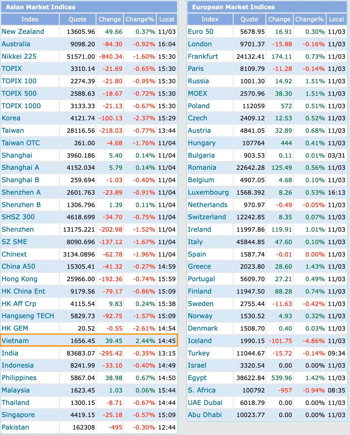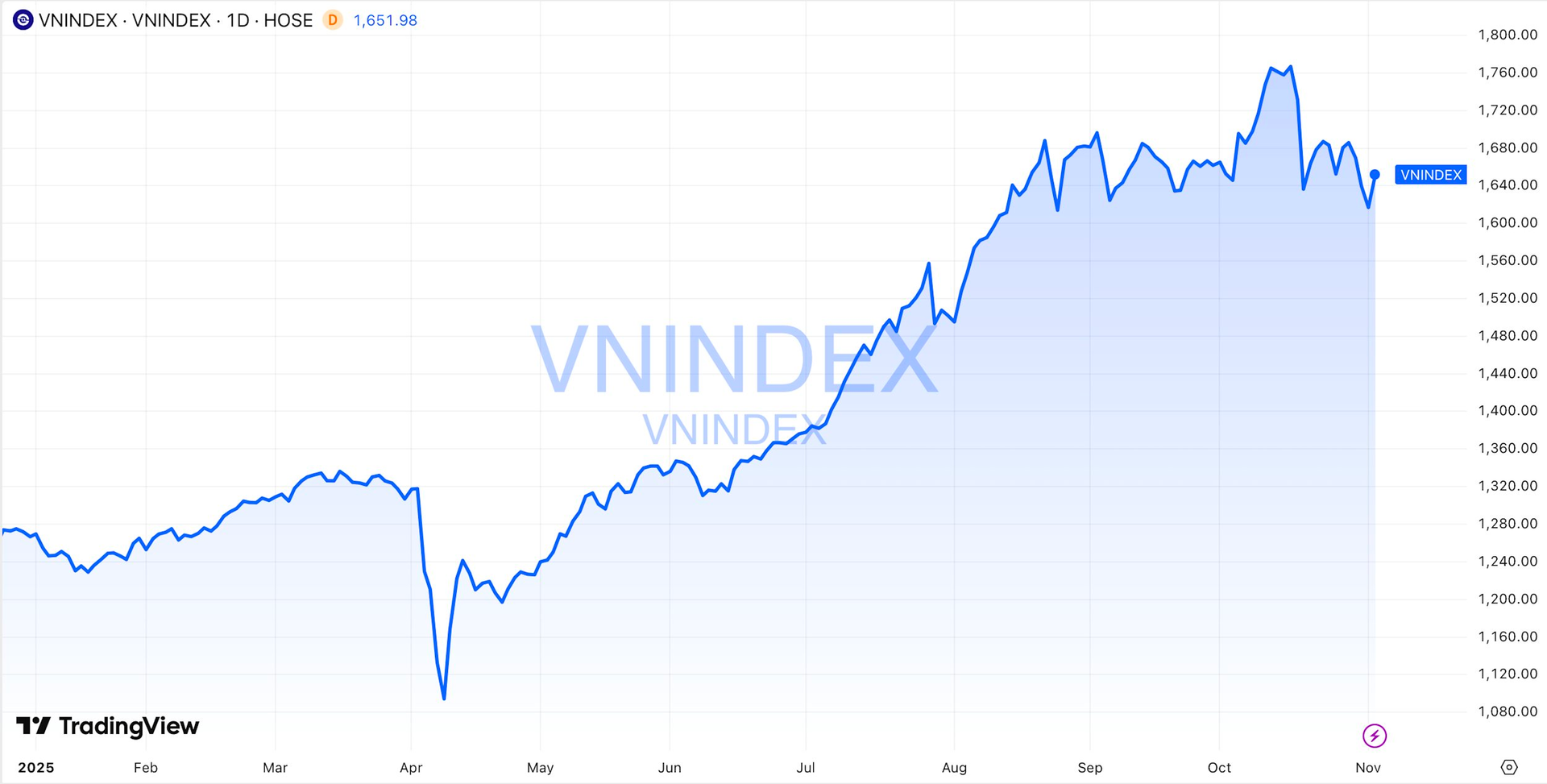 VN-Index đóng cửa phiên 4/11 tăng gần 35 điểm (+2,16%) qua đó lấy lại mốc 1.650 điểm. Đây là phiên tăng mạnh nhất của thị trường kể từ đầu tháng 10. Con số 2,16% đưa chứng khoán Việt Nam trở thành thị trường tăng mạnh nhất Châu Á.