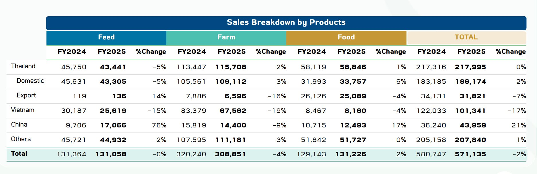 C.P. Foods (CPF), công ty mẹ của C.P. Việt Nam, vừa công bố kết quả kinh doanh cả năm 2025. CPF đạt doanh thu tại Việt Nam là 101,3 tỷ baht, tương đương 85 nghìn tỷ đồng , giảm 17% so với cùng kỳ.