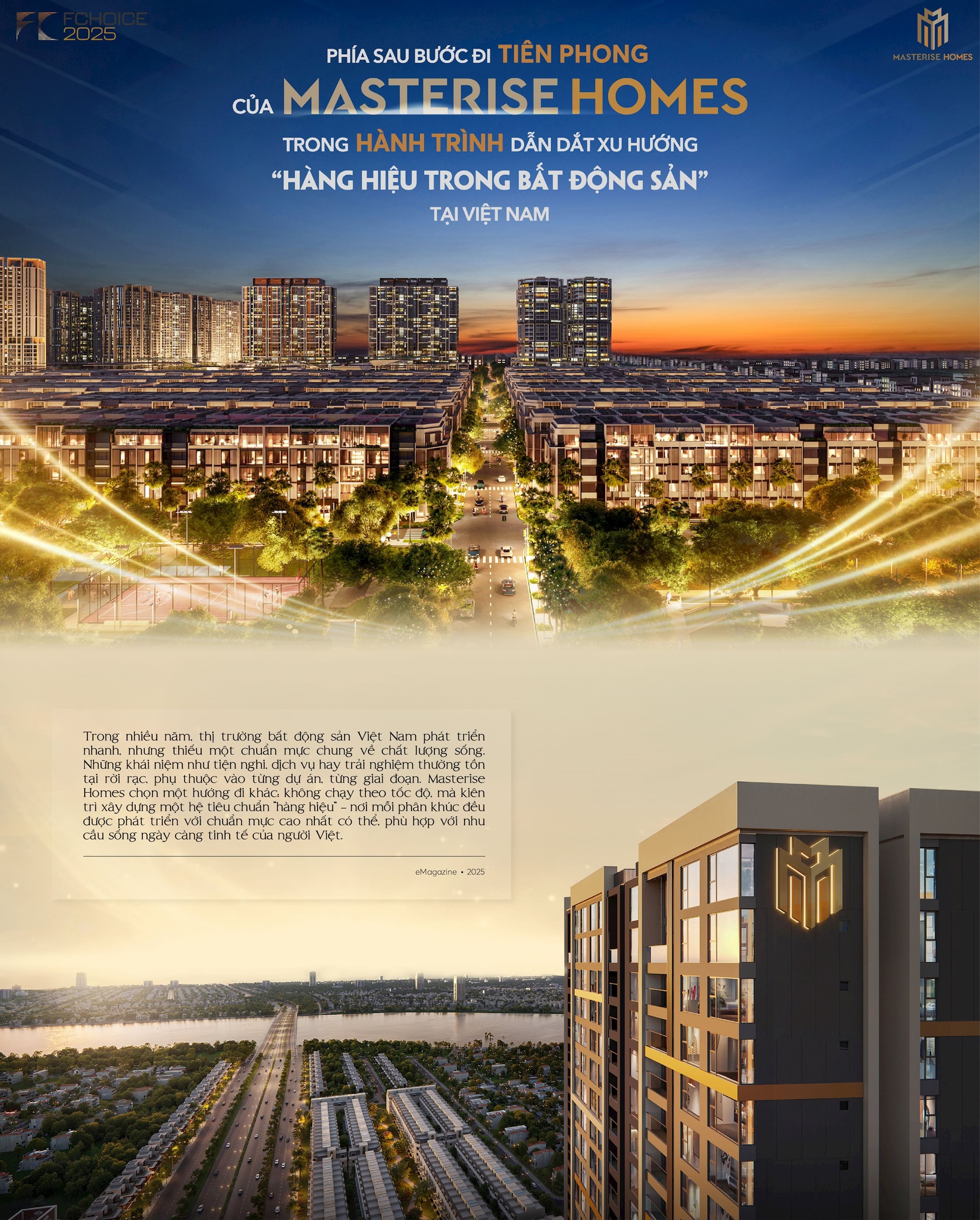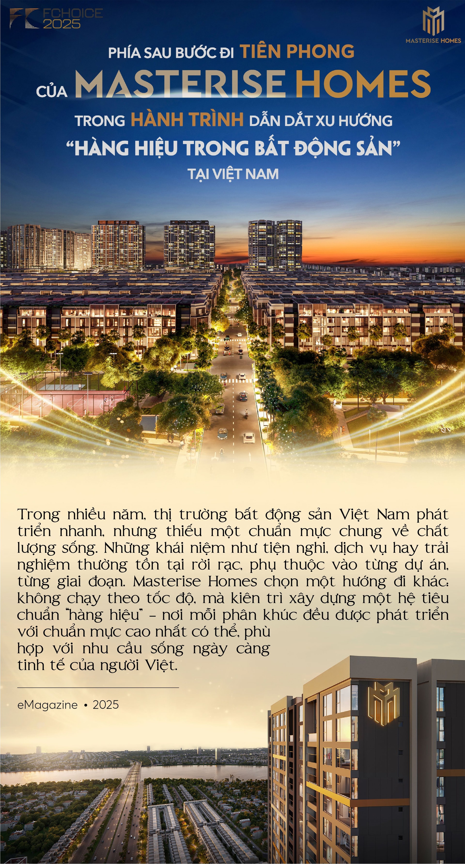 Cũng trong năm 2025, tại Việt Nam, Masterise Homes được vinh danh “Nhà phát triển bất động sản hàng hiệu của năm” trong khuôn khổ FChoice 2025 Awards – sự ghi nhận dành cho doanh nghiệp đã tiên phong xây dựng một hệ sinh thái sản phẩm đa dạng, nơi “hàng hiệu” không bị giới hạn trong một phân khúc siêu sang, mà trở thành chuẩn mực sống được thiết kế riêng cho từng nhóm khách hàng.