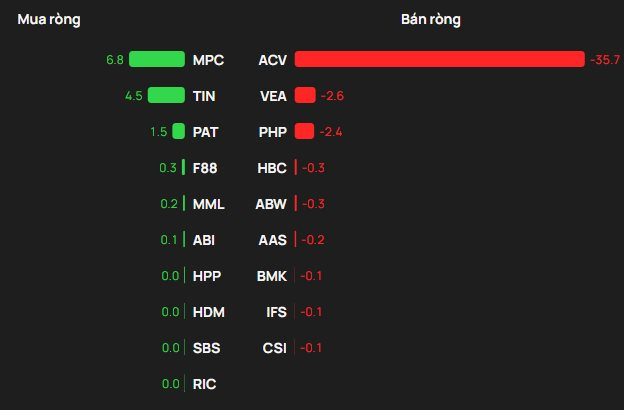 Ngược chiều, ACV bị khối ngoại bán ròng 36 tỷ đồng. Ngoài ra khối ngoại cũng bán ròng tại VEA, PHP,...
