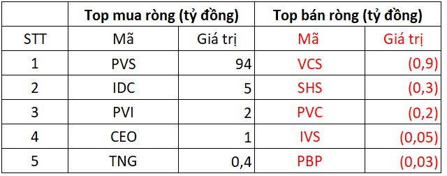 Ngược lại, VCS, SHS, PVC,... cũng bị bán ròng vài trăm triệu đồng trên HNX.