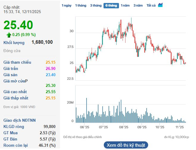 Về kết quả kinh doanh, quý 3/2025, doanh thu thuần của Dabaco đạt 4.841 tăng 37% so với cùng kỳ. Lợi nhuận sau thuế quý III/2025 đạt 342 tỷ đồng, tăng gần 10% so với cùng kỳ.