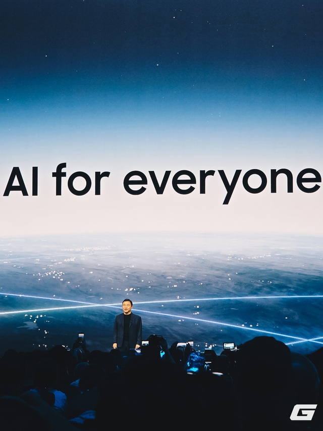 Tầm nhìn "AI for everyone" được công bố tại sự kiện Galaxy Unpacked 2026. Hình ảnh được chụp bởi Galaxy S25 Ultra.