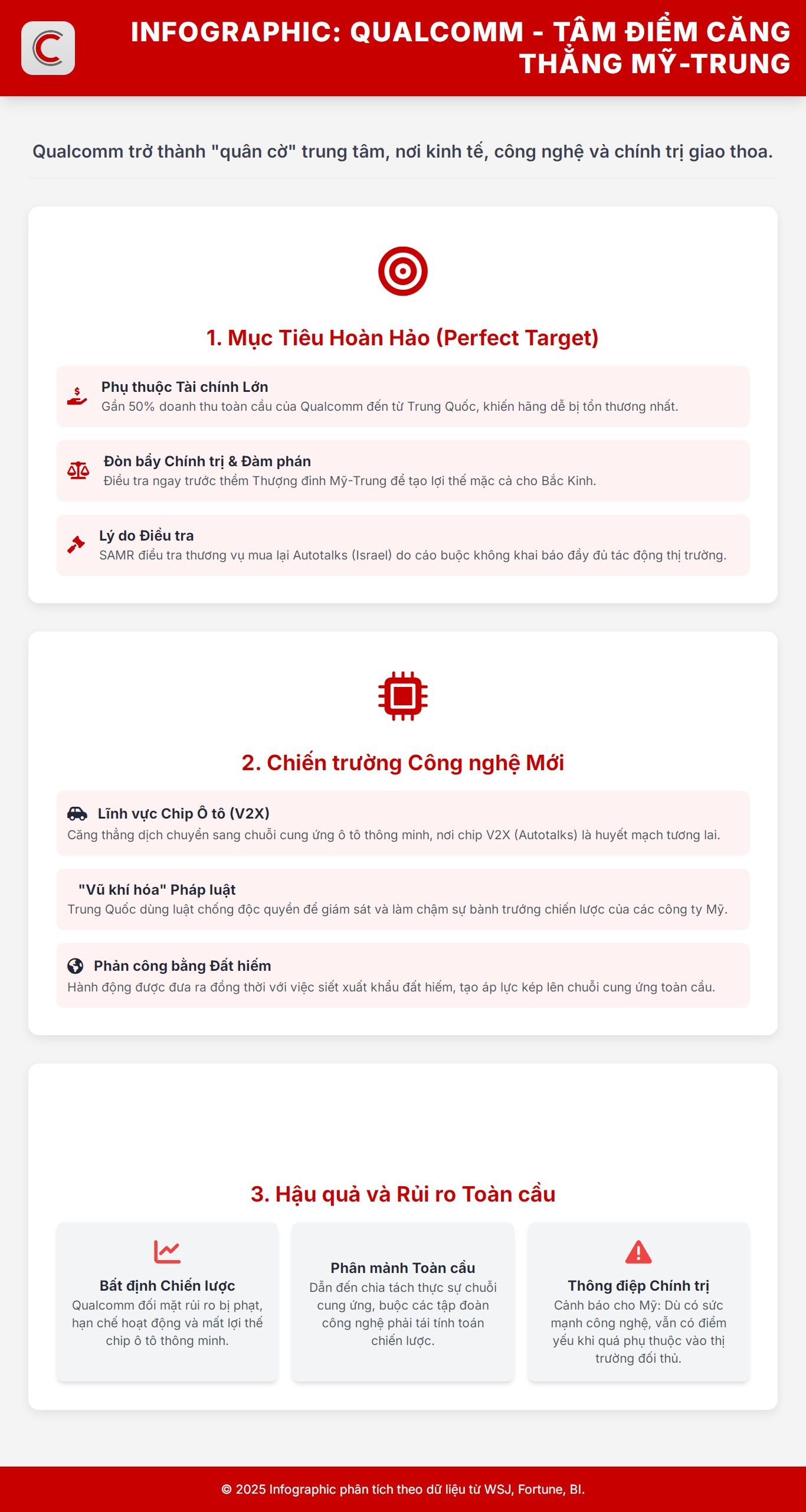 Với Bắc Kinh, việc nhắm vào Qualcomm không chỉ là động thái pháp lý, mà là thông điệp chính trị rõ ràng: Trung Quốc cũng có đòn phản công hữu hiệu trong cuộc chiến công nghệ.