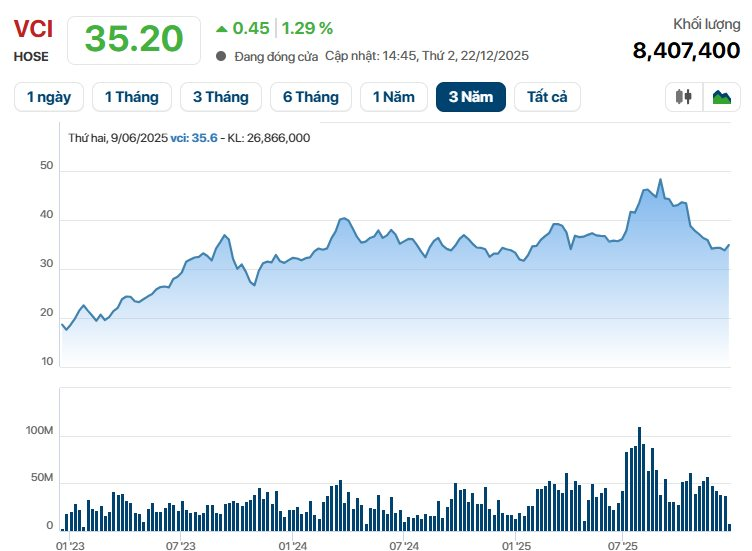 Với Chứng khoán Vietcap, trong 9 tháng đầu năm 2025, VCI ghi nhận doanh thu hoạt động 3.454 tỷ đồng, tăng 28%; lợi nhuận sau thuế đạt 899 tỷ đồng tăng 30% so với cùng kỳ năm 2024.