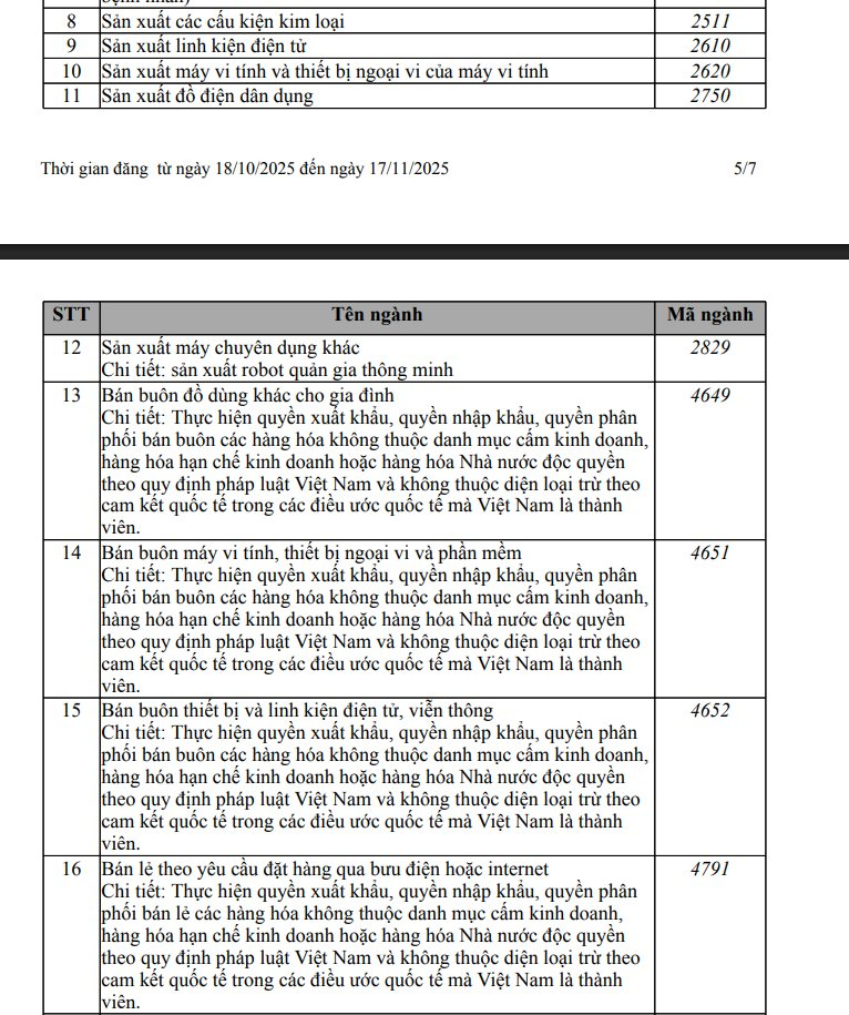 Theo cập nhật, SEHC nâng số ngành hoạt động lên 20. Một số việc nổi bật là Sản xuất các cấu kiện kim loại (mã ngành 2511), Sản xuất linh kiện điện tử (2610), Sản xuất máy vi tính và thiết bị ngoại vi của máy vi tính (2620), Sản xuất máy chuyên dụng khác (2829) với sản phẩm là robot quản gia thông minh...