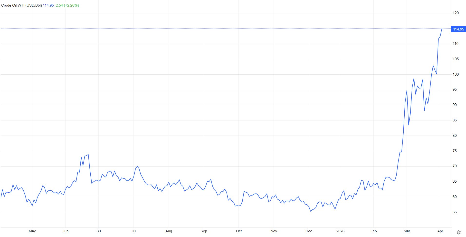 Trong khi đó, giá dầu thô ngọt nhẹ WTI tăng mạnh 3,9 USD, tương đương 3,55%, lên mức 116,4 USD mỗi thùng.