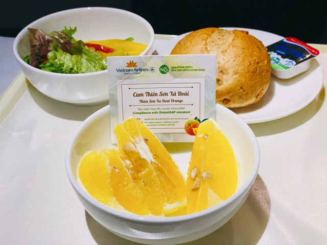 Suất ăn trên chuyến bay Vietnam Airlines với các món đặc trưng của Việt Nam – điểm chạm văn hóa Việt giữa hành trình quốc tế.