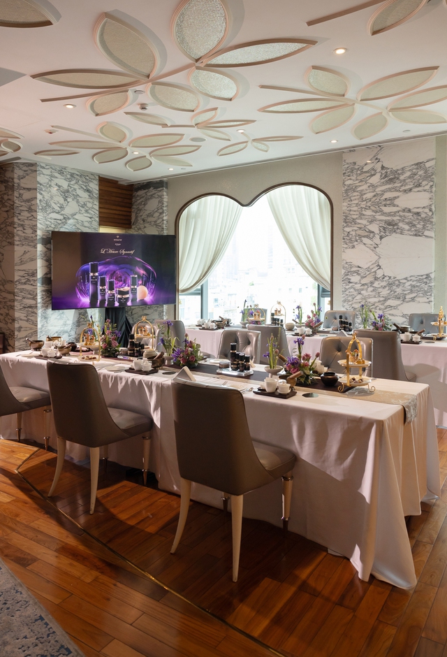 Lấy biểu tượng hoa hồng tím Synactif làm trung tâm - loài hoa đạt được huy chương vàng hạng mục sản phẩm làm đẹp và nước hoa tại Paris Bagatelle Rose Trials với hương thơm tinh khiết, không gian sự kiện được xây dựng như một khu vườn nghệ thuật thu nhỏ, phủ sắc tím mơ màng cùng ánh sáng dịu nhẹ. Từng chi tiết trong cách bài trí, từ hương thơm lan tỏa trong không khí, chất liệu trang trí cho đến âm thanh nền đều được tiết chế để dẫn dắt khách mời bước vào một thế giới chậm rãi hơn, nơi các giác quan được đánh thức một cách tự nhiên.