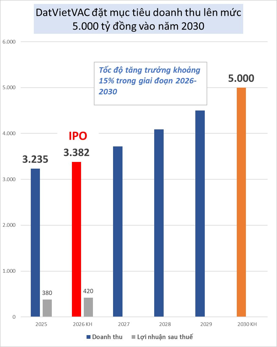 Cụ thể, DatVietVAC ghi nhận doanh thu 3.235 tỷ đồng và lợi nhuận sau thuế đạt 380 tỷ đồng trong năm 2025, đồng thời duy trì tỷ lệ chi trả cổ tức cho cổ đông ở mức 30%.