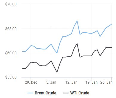 Trên thị trường năng lượng, giá dầu gần như đi ngang sau khi tăng mạnh trong phiên cuối tuần trước. Giá dầu Brent dao động quanh 65,7–65,8 USD/thùng, trong khi dầu WTI giữ trên 61 USD/thùng. Đà tăng trước đó được hỗ trợ bởi lo ngại gián đoạn nguồn cung tại Mỹ do thời tiết khắc nghiệt và căng thẳng leo thang giữa Mỹ và Iran. Biên độ dao động hẹp của hai loại dầu cho thấy thị trường đang trong trạng thái thận trọng, chờ đợi thêm tín hiệu về nhu cầu tiêu thụ và chính sách nguồn cung.