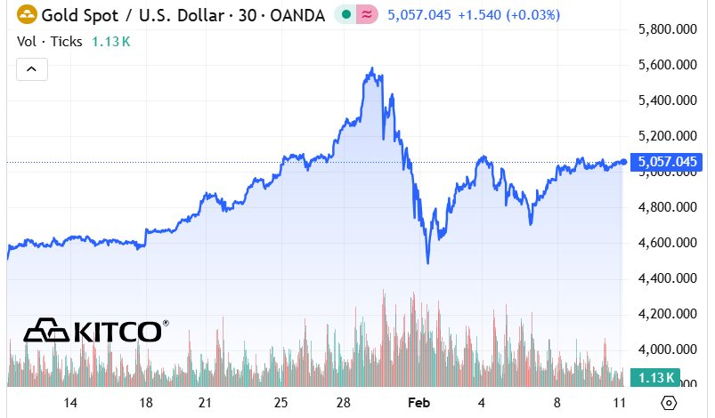 Giá vàng duy trì trạng thái tích lũy quanh mốc 5.000 USD/ounce sau khi Mỹ công bố một số dữ liệu quan trọng liên quan đến thị trường và việc làm. Trước đó, kim loại quý từng vọt lên gần 5.595 USD/ounce vào cuối tháng 1, sau đó điều chỉnh mạnh và lùi về dưới ngưỡng 5.000 USD/ounce.