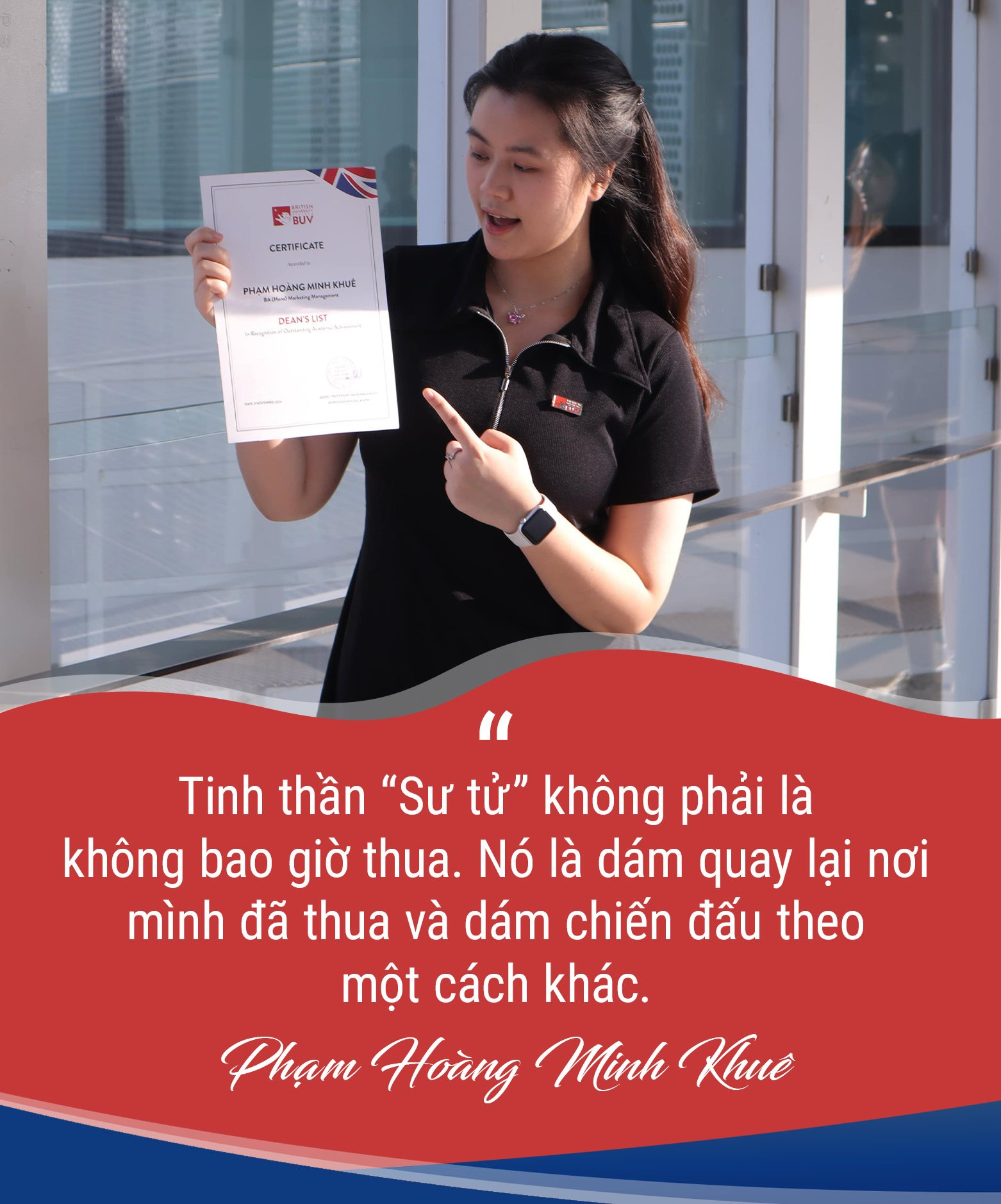 Trước đó, Phạm Hoàng Minh Khuê - sinh viên chương trình của nhân BUV từng được gọi là “quán quân học bổng”, sở hữu tới 12 thư mời nhập học từ nhiều nơi trên thế giới. Với thành tích ấn tượng này, nhiều người có thể nghĩ rằng Khuê đang đi trên một con đường trải đầy hoa. Nhưng sự thật thì ngược lại: cô gái nhỏ luôn luôn trong quá trình “đập đi xây lại” chính mình - từ một người luôn khao khát đứng đầu, Khuê đã học cách lắng nghe, thấu cảm và trưởng thành, đủ bản lĩnh để vượt qua thử thách và tiếp tục vươn lên.