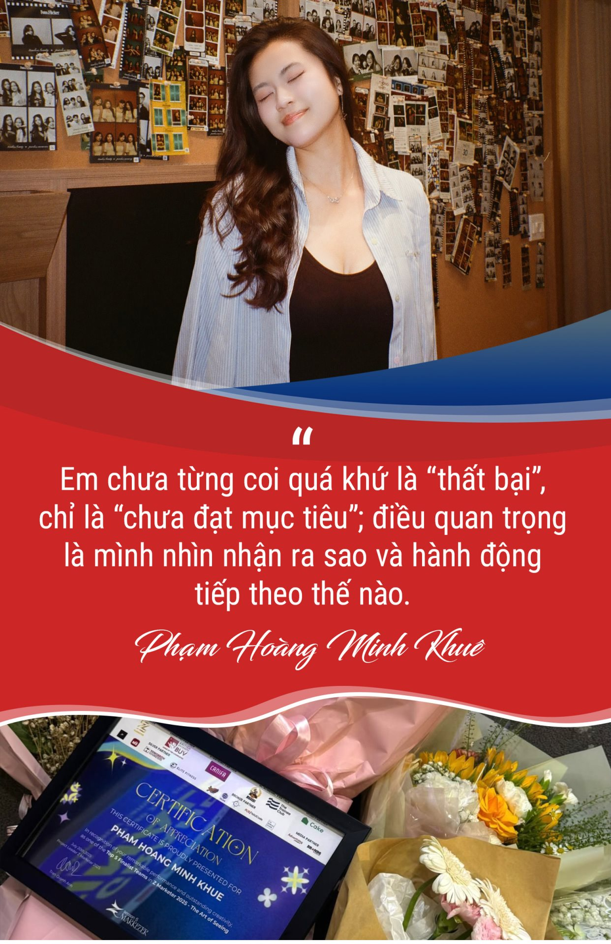 Sau cùng, thứ Khuê định nghĩa lại rõ nhất là khái niệm “xuất sắc”. Với cô, một người xuất sắc không phải là người luôn đứng đầu mọi bảng xếp hạng, mà là người biết nhìn lại, biết sửa mình và chọn được con đường phù hợp để tiếp tục cố gắng.” Em chưa từng coi quá khứ là “thất bại”, chỉ là “chưa đạt mục tiêu”; điều quan trọng là mình nhìn nhận ra sao và hành động tiếp theo thế nào”, Minh Khuê nhắc lại tinh thần bản thân theo đuổi.