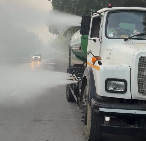 Các “súng” phun sương chống khói bụi xuất hiện ngày càng nhiều, đặc biệt gần dinh thủ tướng và các đại sứ quán. Giới chuyên gia cho rằng chính quyền dùng cách này để giảm thông số xung quanh hơn 30 trạm quan trắc chất lượng không khí.