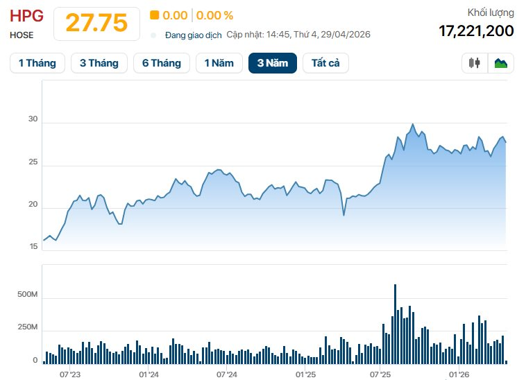 Chốt phiên 29/4, thị giá HPG đạt 27.750 đồng/cp.