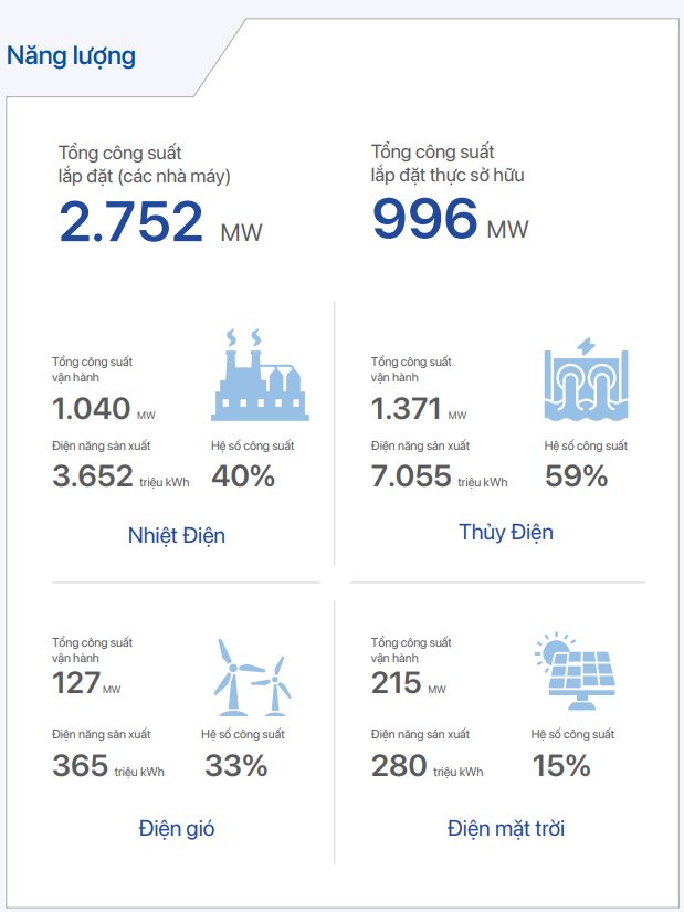 HĐQT đề ra mục tiêu nâng tổng công suất phát điện lên mốc 3.000 MW vào năm 2030. Con số này cao gấp 2,5 lần so với mức công suất thực tế xấp xỉ 1.200 MW hiện tại. Sự tăng trưởng nhờ kế hoạch đa dạng hóa danh mục năng lượng, tập trung vào điện gió ngoài khơi, gần bờ và điện mặt trời nổi.