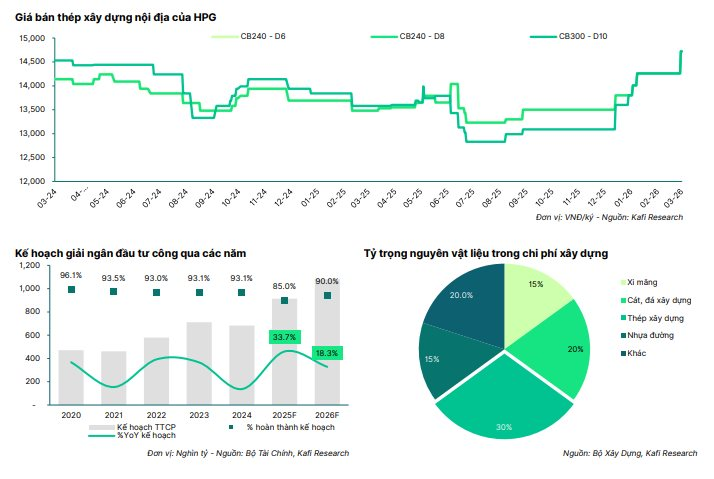 (2) Hoạt động giải ngân đầu tư công được đẩy mạnh quyết liệt trong năm 2026 kỳ vọng sẽ tạo ra nhu cầu hấp thụ lớn cho các dòng thép xây dựng cốt lõi của HPG.