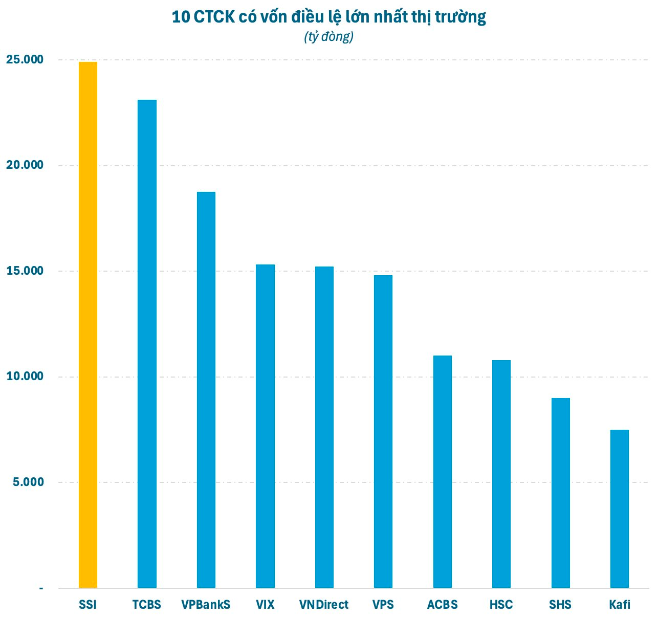 Nếu chào bán cho cổ đông hiện hữu, vốn điều lệ của SSI sẽ tăng lên 24.900 tỷ đồng. Con số này sẽ đưa SSI vượt Chứng khoán Techcom (TCBS – mã TCX) để lấy lại “ngôi vương” vốn điều lệ toàn ngành chứng khoán.
