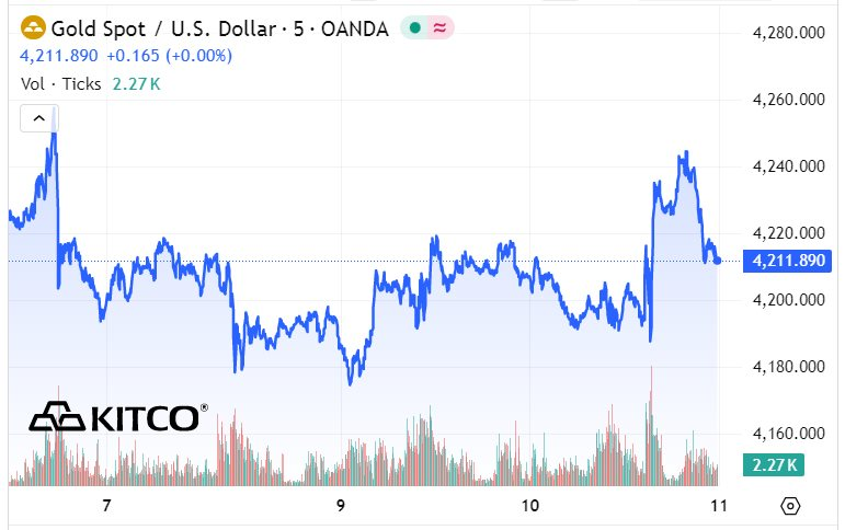 Trên thị trường quốc tế, giá vàng giao ngay hiện giao dịch quanh mốc 4.213,1 USD/ounce, tăng nhẹ 5,1 USD/ounce so với cùng thời điểm phiên trước. Quy đổi theo tỷ giá của Vietcombank, giá vàng thế giới tương đương 134,2 triệu đồng/lượng (chưa gồm thuế và phí), thấp hơn giá trong nước khoảng 20,3 triệu đồng/lượng.
