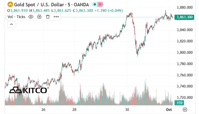 Trên thị trường quốc tế, giá vàng thế giới trong phiên sáng hiện giao dịch quanh mức 3.863,1 USD/ounce, tăng 9,4 USD so với cùng thời điểm phiên giao dịch trước. Quy đổi theo tỷ giá niêm yết tại Ngân hàng TMCP Ngoại thương Việt Nam (Vietcombank), giá vàng thế giới tương đương khoảng 123,5 triệu đồng/lượng (chưa bao gồm thuế và phí), thấp hơn giá trong nước khoảng 14,5 triệu đồng/lượng.