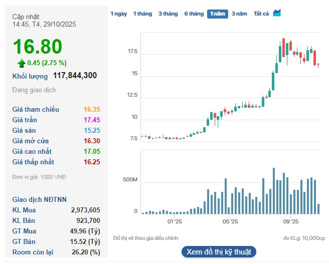 Trên thị trường chứng khoán, kết thúc phiên giao dịch ngày 29/10, cổ phiếu SHB của Ngân hàng TMCP Sài Gòn Hà Nội đã tăng 2,8% lên mức giá 16.800 đồng/cp.